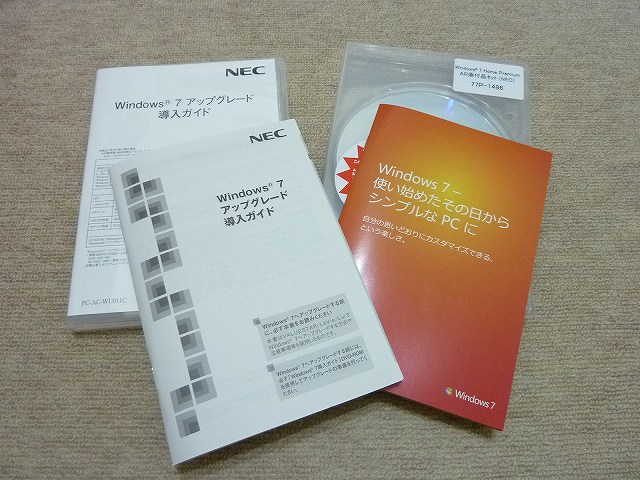 昨日、NECで注文したWindows7のアップグレード版が届いたので、