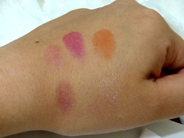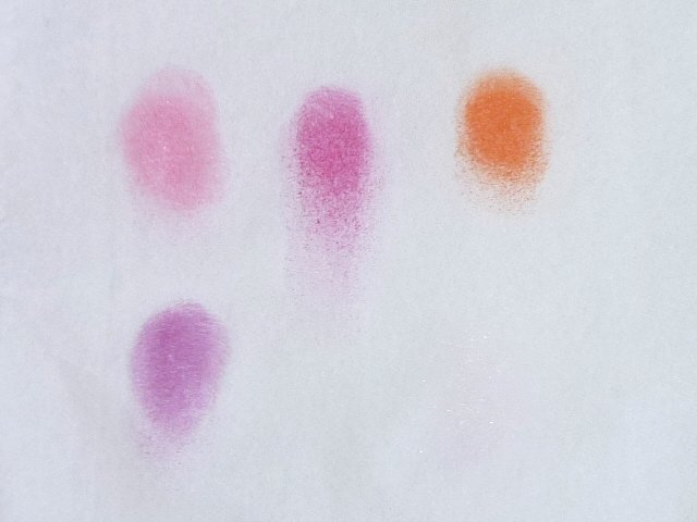 左下:プラム 真ん中:ショッキングピンク 右上:オレンジ 左下:うすいピンクラメ |