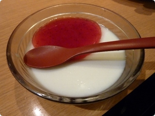 これは娘が気に入った、ストロベリーソース付きの杏仁豆腐。
